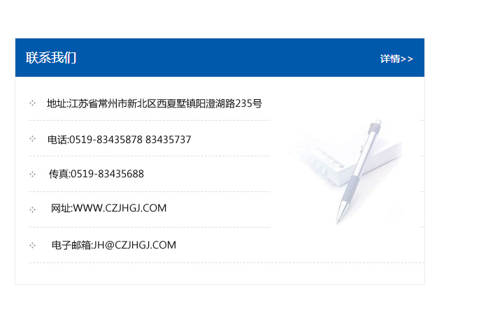 傳真:0519-83435688    郵編:213135    網址:WWW.czjhgj_com.dd-qb.com    電子郵箱:JH@czjhgj_com.dd-qb.com
